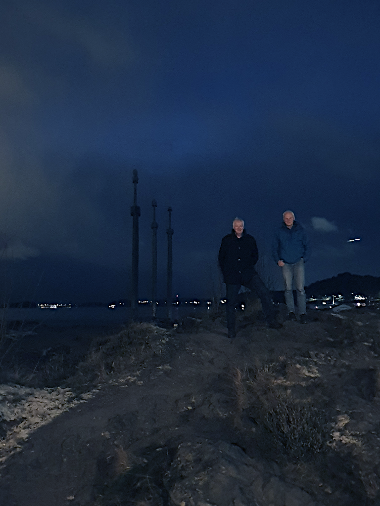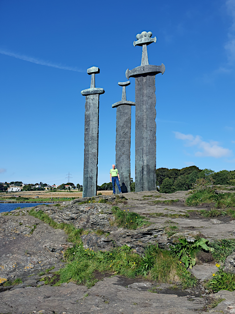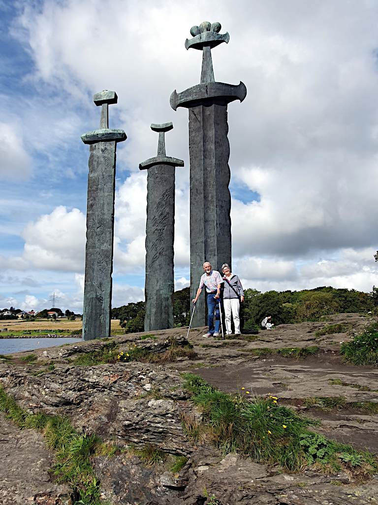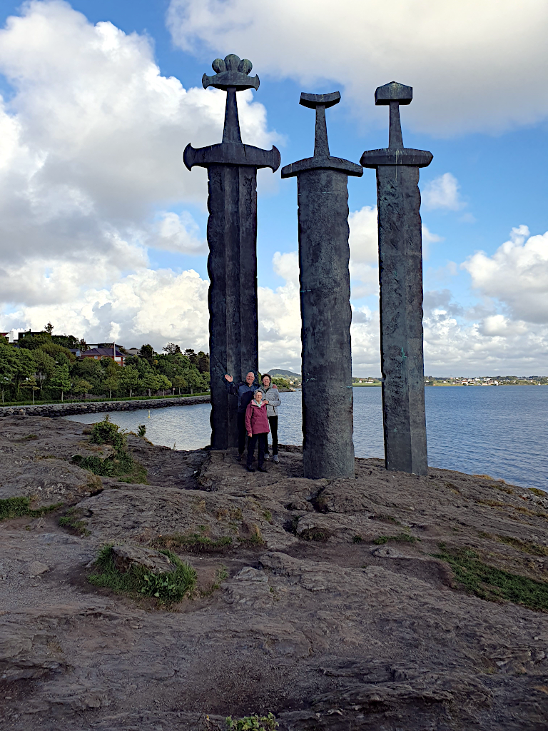 Seit 2010 fahren wir mit allen, die bei uns zu Besuch waren, raus an den Hafrsfjord zu den „Schwertern im Felsen”, um dort ein Erinnerungsfoto zu schießen — diejenigen unter euch, die vorher schon mal hier waren, müssen halt noch einmal vorbei kommen!